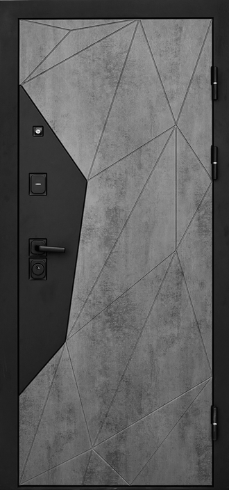 Внешняя отделка: Металл "Черный муар" + МДФ-панель t=10 мм в покрытии ПВХ "Бетон темный+Черный кварц"