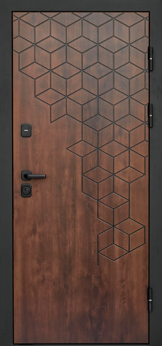 Внешняя отделка: Металл "Черный муар" + МДФ-панель t=10 мм в покрытии Vinorit "Дуб с патиной"