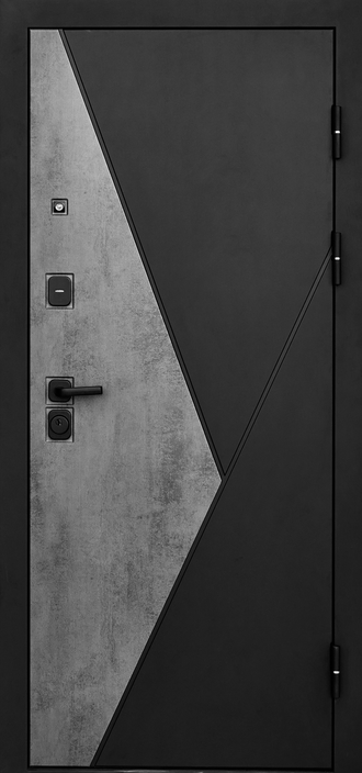 Внешняя отделка: Металл "Черный муар" + МДФ-панель t=10 мм в покрытии ПВХ "Бетон темный+Черный кварц"